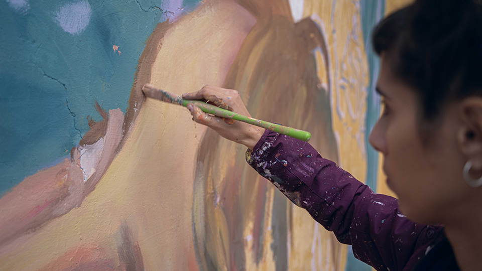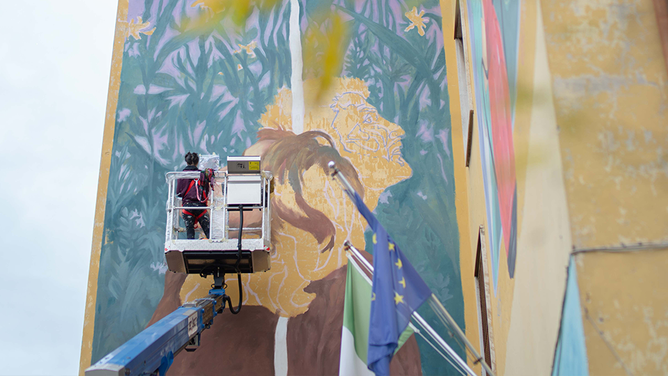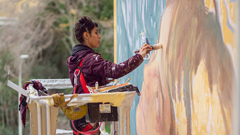 Agus Rúcula è un’artista urbana, docente e illustratrice nata in Argentina. Dipinge per strada dal 2012 e ha partecipato a festival in Argentina, Colombia, Messico, Ecuador, Bolivia, Brasile, Uruguay e Spagna. Sceglie di dedicarsi all’arte urbana tentando sempre di costruire un dialogo con il contesto, cosciente che ogni progetto è una opportunità per comunicare. La figura umana, protagonista delle sue opere, invita chi osserva a empatizzare con le sensazioni rappresentate nelle scene. I bozzetti sono ispirazione di fotografie scattate dall’artista stessa, che pone speciale accortezza ai dettagli. Le scene raffigurate sono frutto di una costruzione collettiva, a cui partecipano ballerini, attori/attrici, e spesso anche persone volontarie che si offrono per posare.